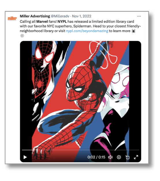 Partnership Collaboration: Driving engagement with younger audiences to get special edition library cards offered in partnership with Marvel and Spiderman.